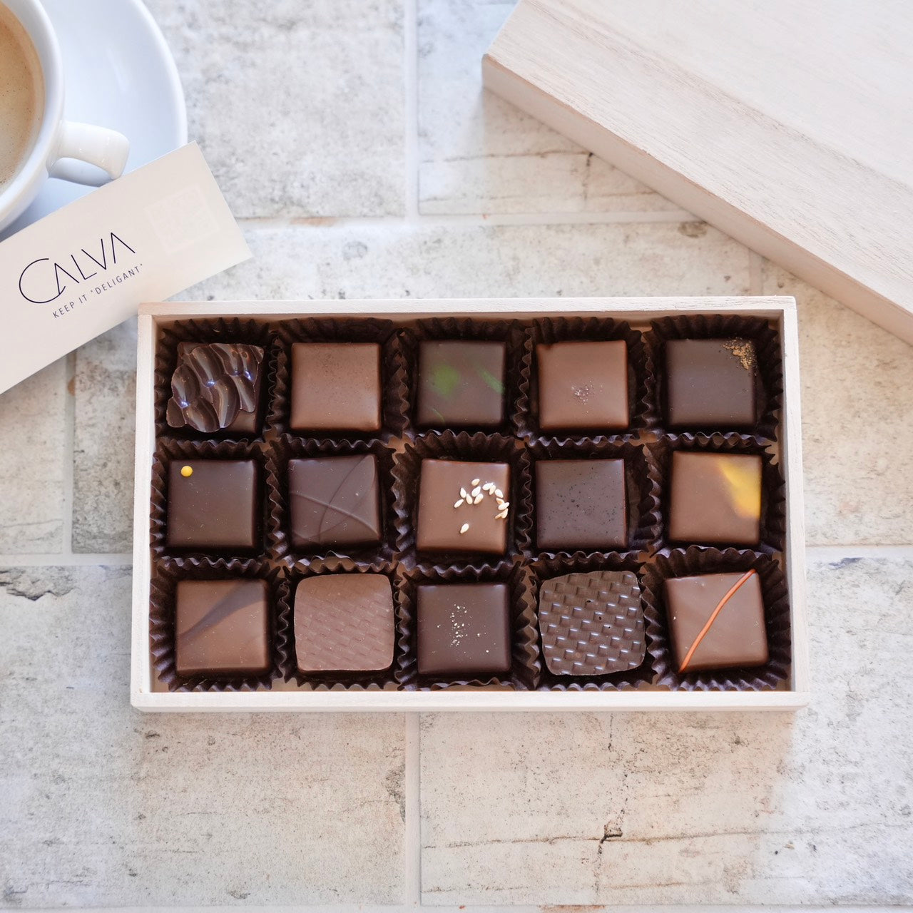 CALVAが誇る、個性豊かなボンボンショコラ15個を詰め合わせました。 ワールドチョコレートマスターズ2022で味覚部門で世界一の評価を得たシェフ田中二朗が、選び抜いたカカオと素材の個性を引き出し、一つ一つ丁寧に作り上げた至福のコレクションです。