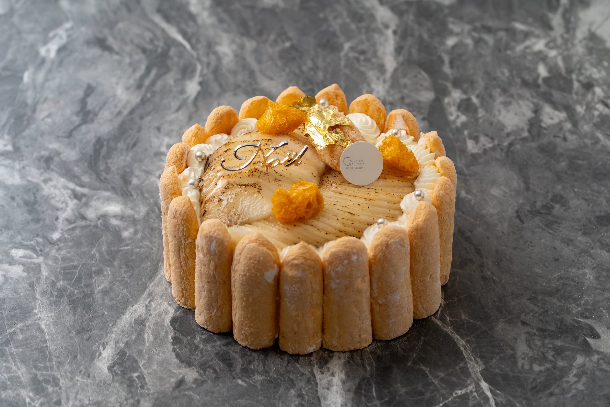 西洋花梨と洋梨を合わせた軽やかなムースに、アプリコットの酸味を忍ばせたシャルロット。 フレッシュな洋梨を贅沢に飾り、果実の香りがダイレクトに広がります。聖夜をあざやかに彩るCalvaの2025Noelガトーです。
